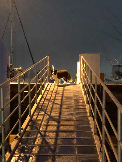 In the end, she leapt on board, made it her own and looked completely at ease, except for slight hesitance going down and up the stairs to get to the saloon.